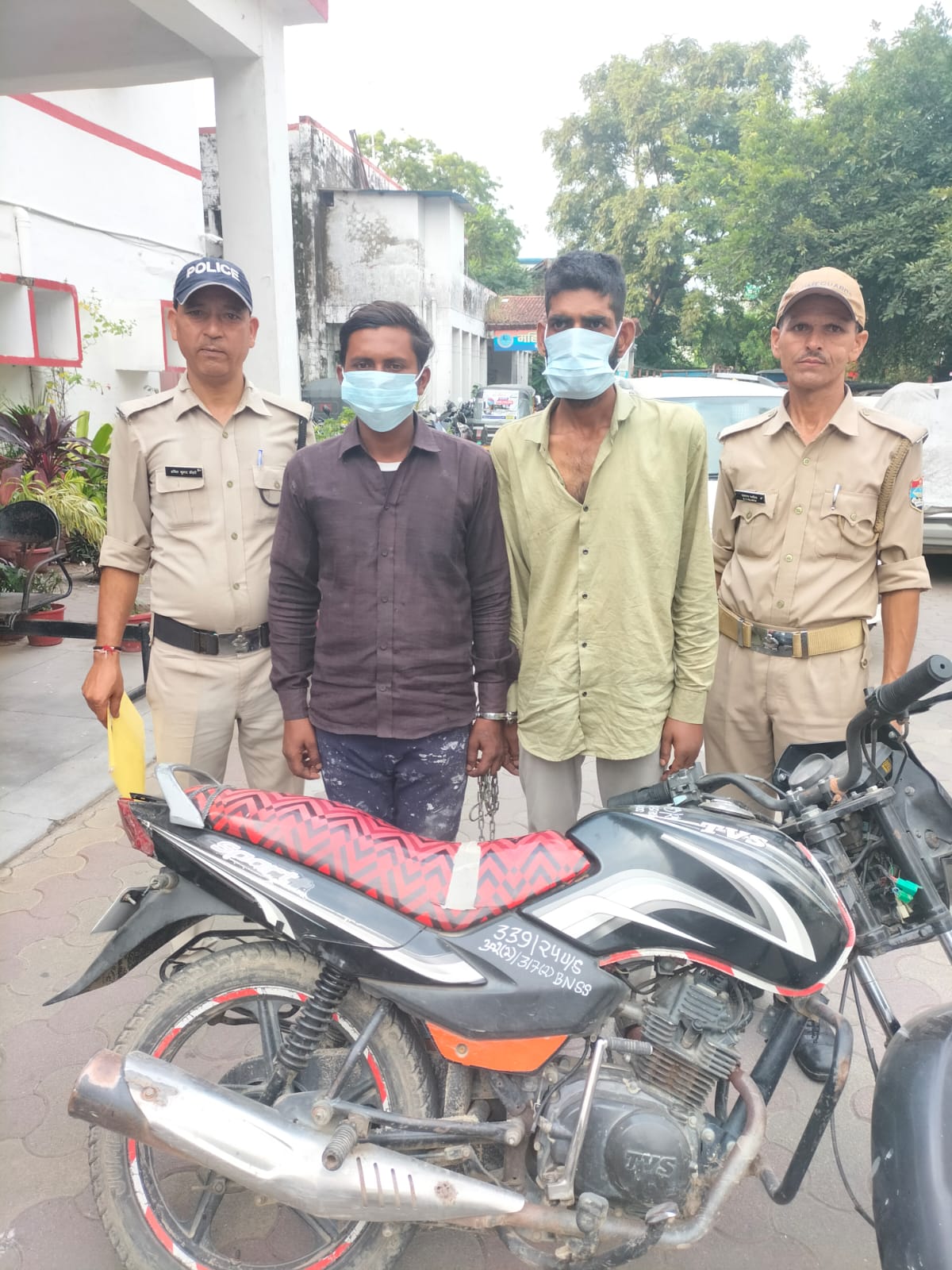 उक्त घटना के संबंधित अज्ञात अभियुक्त की तलाश एवं चोरी की गयी मो0सा0 की बरामदगी हेतु घटनास्थल के आस–पास सीसीटीवी कैमरों का अवलोकन व अन्य माध्यम से पुलिस टीम द्वारा *02 अभियुक्तों को मय चोरी गयी मो0सा0 सहित दि0 20.09.24 को एफटीआई रोड से गिरफ्तार* किया गया है ।