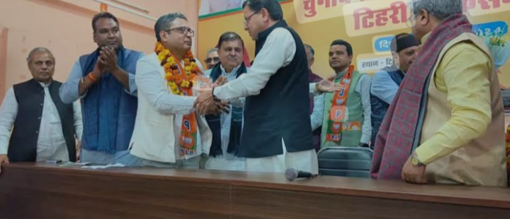 प्रदेश चुनाव प्रभारी एवं राष्ट्रीय महासचिव दुष्यंत कुमार गौतम मुख्यमंत्री पुष्कर सिंह धामी प्रदेश अध्यक्ष महेंद्र भट्ट की मौजूदगी में उन्होंने पार्टी की सदस्यता ली । परेड ग्राउंड स्थित टिहरी लोकसभा कार्यालय में हुए इस ज्वाइनिंग कार्यक्रम में उनका फूलमाला एवं पार्टी का पटका पहनाकर स्वागत किया गया ।