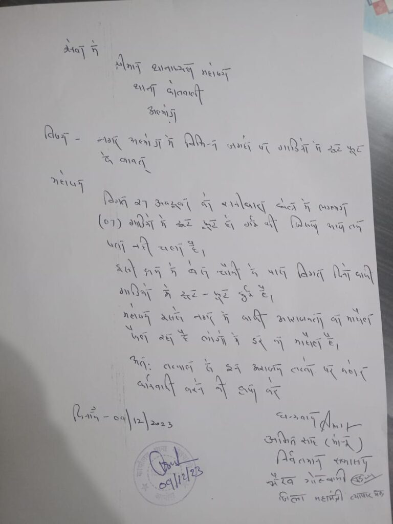 अल्मोड़ा-लक्ष्मेश्वर वार्ड के निवर्तमान सभाषद अमित साह मोनू ने व्यापार मंडल जिला महामंत्री भैरव गोस्वामी के साथ कोतवाली पहुंच शहर कोतवाल को एक शिकायती पत्र सौंपा।पत्र के माध्यम से कहा गया कि अल्मोड़ा नगर में पिछले कुछ समय से लगातार रात के वक्त सड़क किनारे खड़ी गाड़ियों में तोड़ फोड़ के मामले सामने आ रहे हैं।कहा कि विगत 27 अक्टूबर को रानीधारा क्षेत्र में लगभग सात गाड़ियों में तोड़फोड़ की गयी थी।तोड़ फोड़ करने वालों का डेढ़ महीने बाद भी कोई सुराग नहीं लग सका।कहा गया कि पिछले दिनों बेस चौकी के पास भी बहुत सारी गाड़ियों में तोड़ फोड़ का मामला सामने आया है।जिस पर कड़ी कार्यवाही की जाए।इसके बाद प्रेस को जारी एक बयान में निवर्तमान सभाषद अमित साह मोनू ने कहा कि लगातार नगर में अराजक तत्वों के द्वारा गाड़ियों में तोड़ फोड़ की जा रही है,