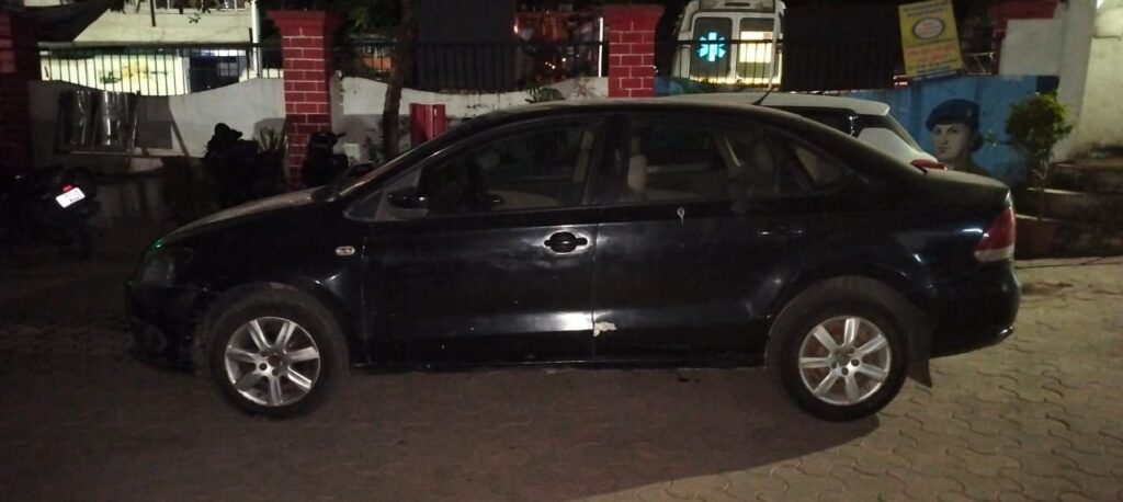 प्रभारी निरीक्षक कोतवाली हल्द्वानी राजेश कुमार यादव द्वारा रात्रि चैकिंग के दौरान एक काले रंग की कार ओवर स्पीड व खतरनाक तरीके से भोटिया पड़ाव से काठगोदाम की ओर जाते हुए दिखाई दी जिसकी सूचना काठगोदाम थाने को वाहन रोकने हेतु बैरियर लगाने को बताया गया। वाहन को नारीमन तिराहे पर रोका गया। वाहन नं0- UK06R-5443 फोक्सवेगन कार वाहन में सवार लोगों को चैक किया गया तो वाहन को चालक मौ0 कैफ निवासी किदवई नगर रेलवे बाजार वार्ड नं0- 22 हल्द्वानी उम्र- 20 वर्ष चला रहा था जिसमे अन्य 05 व्यक्ति क्रमशः