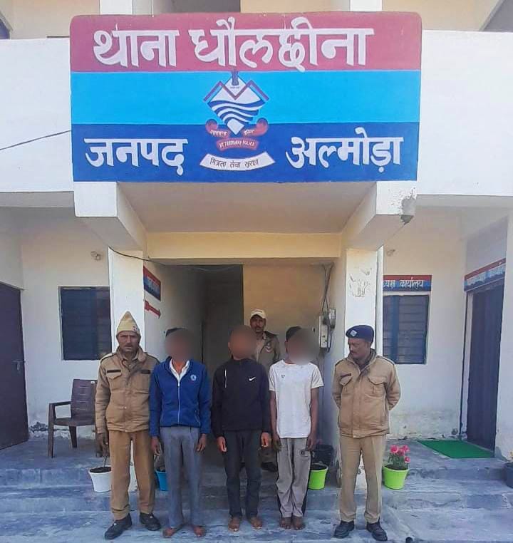 सूचना पर धौलछीना पुलिस टीम तत्काल मौके पर पहुंची, तो 03 लोग शराब पीकर मार-पीट में उतारू होकर शोर-शराबा, हंगामा कर रहे थे, जिन्हें काफी समझाने का प्रयास किया गया, परन्तु वह पुलिस कर्मियों के समझाने पर भी नही मान रहे थे।