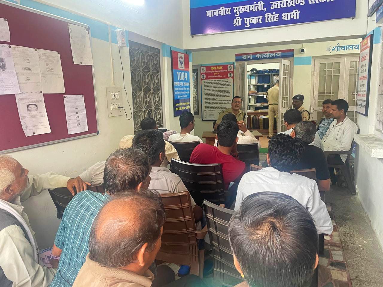 देघाट अल्मोड़ा आज दिनांक 12.09.2024 को थानाध्यक्ष देघाट दिनेश नाथ महंत द्वारा थाना परिसर में थाना क्षेत्र के ज्वेलर्स दुकानदारों के साथ मीटिंग की गई।सभी को प्रतिष्ठानों में किये जाने वाले सुरक्षा प्रबंधों के बारे में बताया गया कि सभी अपनी दुकानों में CCTV/अलार्म सिस्टम लगाएंगे तथा प्रतिष्ठानों में कार्यरत कर्मियों का शत-प्रतिशत सत्यापन कराएंगे। हिदायत दी गई कि मानक के अनुसार सुरक्षा प्रबंधों में किसी प्रकार की कमी पाएं जाने पर आवश्यक कार्यवाही अमल में लाई जाएगी।