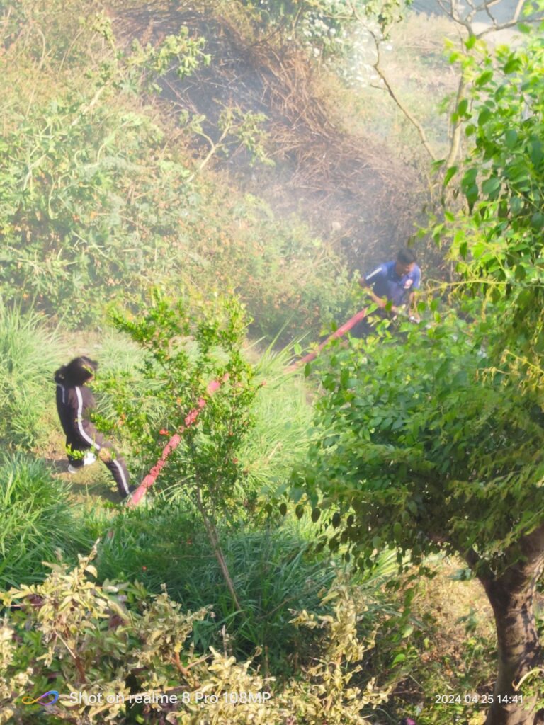 आज दिनांक 25.04.2024 को धारानौला के जंगल में लगी आग जो आवासीय  भवनों की ओर तीव्रता से बढ़ रही थी, अग्निशमन अधिकारी महेश चंद्र के निर्देशन में फायर सर्विस टीम तत्काल मौके पर पहुंची और त्वरित कार्यवाही करते हुए MFE से पंपिंग कर 01 होजरील तथा 02 डिलीवरी होज पाइप की सहायता से  आग को बुझाया गया।