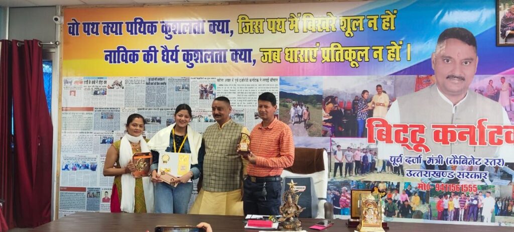 छात्राओं एवं उनके अभिभावकों को सम्बोधित करते हुए पूर्व दर्जा मंत्री बिट्टू कर्नाटक ने कहा कि आज हमारी छात्राएं हर क्षेत्र में उत्कृष्ट प्रदर्शन कर रही हैं।ऐसा कोई भी क्षेत्र नहीं है जिससे छात्राएं आज अग्रिम पंक्ति में खड़ी ना हों। उन्होंने कहा कि ऐसे में हम सभी का दायित्व हो जाता है कि छात्राओं का हर कदम पर उत्साहवर्धन करें जिससे कि उन्हें भी अपनी उपलब्धि में गर्व हो।विदित हो कि श्री कर्नाटक विगत कई वर्षों से अल्मोड़ा विधानसभा के समस्त विद्यालयों के मेधावी विद्यार्थियों,उनके गुरुजनों एवं विधालय के समस्त कर्मचारियों को सम्मानित कर उनका  उत्साहवर्धन करते आ रहे हैं।मेधावी छात्र-छात्राओं को सम्मानित करने के क्रम में पूर्व दर्जा मंत्री कर्नाटक अभी तक 65000 से अधिक छात्र-छात्राओं को सम्मानित कर चुके हैं।इसके साथ ही श्री कर्नाटक खेलकूद में आगे रहने वाले विद्यार्थियों,युवाओं को भी लगातार प्रोत्साहित करते आ रहे हैं। श्री कर्नाटक द्वारा अल्मोड़ा विधानसभा के प्रत्येक विद्यालय में जाकर सम्मान कार्यक्रम आयोजित किये जा रहे हैं। कर्नाटक ने बताया कि उनकी यह मुहिम केवल होनहार विद्यार्थियों के हौसला अफजाई के लिए है, जिससे युवा आने वाले समय में सही दिशा में आगे बढ़ सकें,इसके साथ ही श्री कर्नाटक ने कहा कि वह अल्मोड़ा विधानसभा के समस्त क्षेत्रों में विगत अनेकों वर्षों से नशे के विरुद्ध अपना एक सूत्रीय कार्यक्रम चला रहे हैं।जिसमें छात्र-छात्राओं को लगातार खेलों से जोड़ा जा रहा है। युवाओं को क्रिकेट ,वालीबॉल, फुटबॉल , बैडमिंटन आदि खेलों की किट  वितरित किये जा रहे हैं। उन्होंने युवाओं से अपील करते हुए कहा कि युवा ही देश का भविष्य हैं,इसलिए वह पढ़ाई के अतिरिक्त खेलों में भी अपना ध्यान केंद्रित करें। श्री कर्नाटक ने यह भी कहा कि जिन होनहार विद्यार्थीयों एवं खिलाड़ीयों को पढ़ने एवं खेलों में कोई भी परेशानी आती है तो वह उन विद्यार्थियों एवं खिलाड़ीयों की हर संभव सहायता करने को कृत संकल्प हैं।