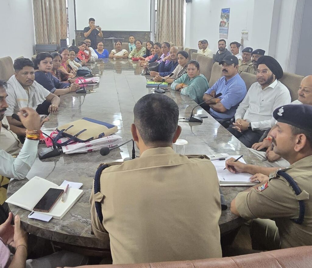 वरिष्ठ पुलिस अधीक्षक  प्रहलाद नारायण मीणा द्वारा आगामी 09 सितंबर 2024 से 15 सितंबर 2024 तक हल्द्वानी में आयोजित होने वाले मां नंदा सुनंदा मेला एवं शोभा यात्रा को शांति एवं कानून व्यवस्था के साथ संपन्न कराने हेतु सम्बन्धितों के साथ गोष्ठी का आयोजन किये जाने के निर्देश पर आज दिनांक 06/09/2023 को  प्रकाश चंद एसपी सिटी हल्द्वानी की अध्यक्षता में  मां नंदा सुनंदा मेला एवं शोभा यात्रा को शांति एवं कानून व्यवस्था के साथ संपन्न कराए जाने के दृष्टिगत मां नंदा सुनंदा इंटरनेशनल सेवा ट्रस्ट  आयोजन कमेटी एवं अन्य जन प्रतिनिधियों के साथ पुलिस बहुउद्देशीय भवन हल्द्वानी के सभागार में गोष्ठी का आयोजन किया गया।