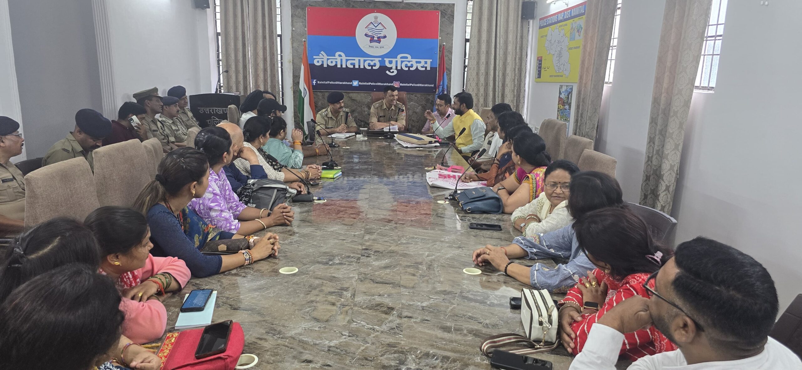 वरिष्ठ पुलिस अधीक्षक  प्रहलाद नारायण मीणा द्वारा आगामी 09 सितंबर 2024 से 15 सितंबर 2024 तक हल्द्वानी में आयोजित होने वाले मां नंदा सुनंदा मेला एवं शोभा यात्रा को शांति एवं कानून व्यवस्था के साथ संपन्न कराने हेतु सम्बन्धितों के साथ गोष्ठी का आयोजन किये जाने के निर्देश पर आज दिनांक 06/09/2023 को  प्रकाश चंद एसपी सिटी हल्द्वानी की अध्यक्षता में  मां नंदा सुनंदा मेला एवं शोभा यात्रा को शांति एवं कानून व्यवस्था के साथ संपन्न कराए जाने के दृष्टिगत मां नंदा सुनंदा इंटरनेशनल सेवा ट्रस्ट  आयोजन कमेटी एवं अन्य जन प्रतिनिधियों के साथ पुलिस बहुउद्देशीय भवन हल्द्वानी के सभागार में गोष्ठी का आयोजन किया गया।