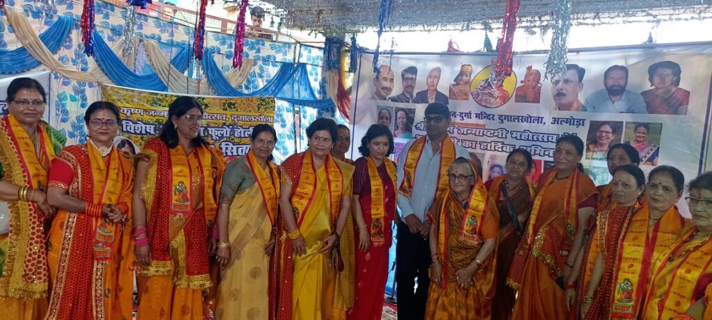अल्मोड़ा – दुगालखोला दुर्गा मंदिर में कृष्ण जन्माष्टमी महोत्सव के तृतीय दिवस पर मुख्य अतिथि श्री शेखर लखचौरा अध्यक्ष बार एसोसिएशन एवं श्रीमती विनीता लखचौरा प्रधानाचार्य शारदा पब्लिक स्कूल व मेजर मठपाल ने दीप प्रज्वलित कर कर कार्यक्रम का शुभारंभ किया आज भी दो टीमों द्वारा नृत्य के साथ भजनों का आयोजन किया गया टीम अध्यक्ष श्रीमती मीनू दुर्गापाल एवं श्रीमती प्रीती जोशी की अध्यक्षता में टीमों ने बहुत सुंदर प्रदर्शन किया इशिका लटवाल पूर्वा दुर्गापाल आस्था कांडपाल विधि दुर्गापाल कीर्ति गैंडा महिमा कांडपाल अवनी गैंडा द्वारा बहुत सुंदर नत्य की प्रस्तुति दी गई