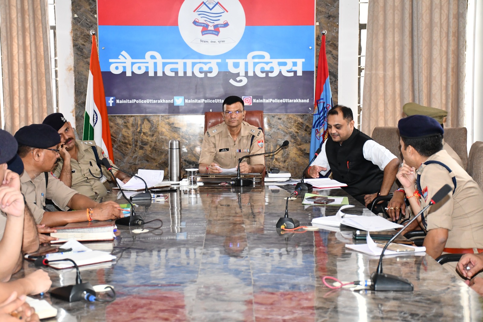 आज दिनांक 6 सितंबर 2024 को एस.पी. सिटी हल्द्वानी प्रकाश चंद्र  की अध्यक्षता में  हल्द्वानी सर्किल के थाना हल्द्वानी, काठगोदाम बनभूलपुरा ,मुखानी के साथ पुलिस बहुउदेशीय भवन हल्द्वानी के सभागार में तथा ऑनलाइन वीडियो कॉन्फ्रेंस के माध्यम से  थाना मल्लीताल,तल्लीताल,भवाली भीमताल, मुक्तेश्वर, बेतालघाट खनस्यू, लालकुआं, चोरगलिया, कालाढूंगी, रामनगर के थाना प्रभारी एवं विवेचकों के साथ  दिनांक 01.07.2024 से लागू 03 नये कानून के तहत आने वाली त्रुटियां की समीक्षा की गई जिसमें निम्न बिंदु पर उपस्थित  आशीष गुप्ता सहायक अभियोजन अधिकारी नैनीताल के द्वारा विवेचकों के साथ आवश्यक विचार विमर्श कर सुझाव दिए गए।