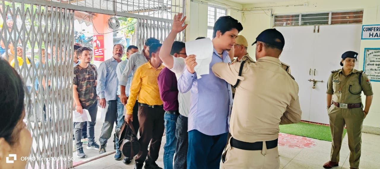 जनतानामा न्यूज़ अल्मोड़ा उत्तराखण्ड सभी परीक्षा केन्द्रों में अल्मोड़ा पुलिस द्वारा परीक्षार्थियों की सघन चेकिंग की जा रही है,भ्रामक/झूठी खबर/अफवाह फैलानों वालो पर भी सतर्क दृष्टि रखी जा रही है एसएसपी अल्मोड़ा देवेन्द्र पींचा, द्वारा आज दिनांक- 18.08.2024 को उत्तराखंड अधीनस्थ सेवा चयन आयोग द्वारा आयोजित होने वाली सहायक अध्यापक (एल0टी0) के पदों पर चयन हेतु लिखित परीक्षा 2024 को शांतिपूर्ण ढंग से सकुशल सम्पन्न कराने हेतु जनपद के सभी परीक्षा केन्द्रो पर सुरक्षा के कड़े इंतजाम किए गए हैं। परीक्षा ड्यूटी में लगे समस्त पुलिस बल को ड्यूटी के दौरान अलर्ट मोड में रहने की सख्त हिदायत दी गई है।SSP अल्मोड़ा के सख्त निर्देश पर पुलिस बल की कार्यवाही👉सभी परीक्षा केंद्रों पर अभ्यर्थियों की डीएफएमडी व एचएचएमडी से सघन चेकिंग फ्रिस्किंग की जा रही है।👉जनपद एलआईयू व एसओजी लगातार सक्रिय रहकर परीक्षा को प्रभावित करने वाले तत्वों पर सतर्क दृष्टि बनाए हुए हैं।👉कोई भी परीक्षार्थी परीक्षा केन्द्र के अन्दर मोबाइल, ब्लूटूथ डिवाइस और कोई इलेक्ट्रानिक गैजेट्स ना ले जा पाए उसके लिए गहनता से चेकिंग चल रही है।👉परीक्षा केन्द्रों पर सीसीटीवी कैमरे और अन्य कैमरों से भी नजर रखी जा रही है।👉सोशल मीडिया प्लेटफार्मों पर अफवाह फैलाने वालों पर भी सतर्क दृष्टि रखी जा रही है।