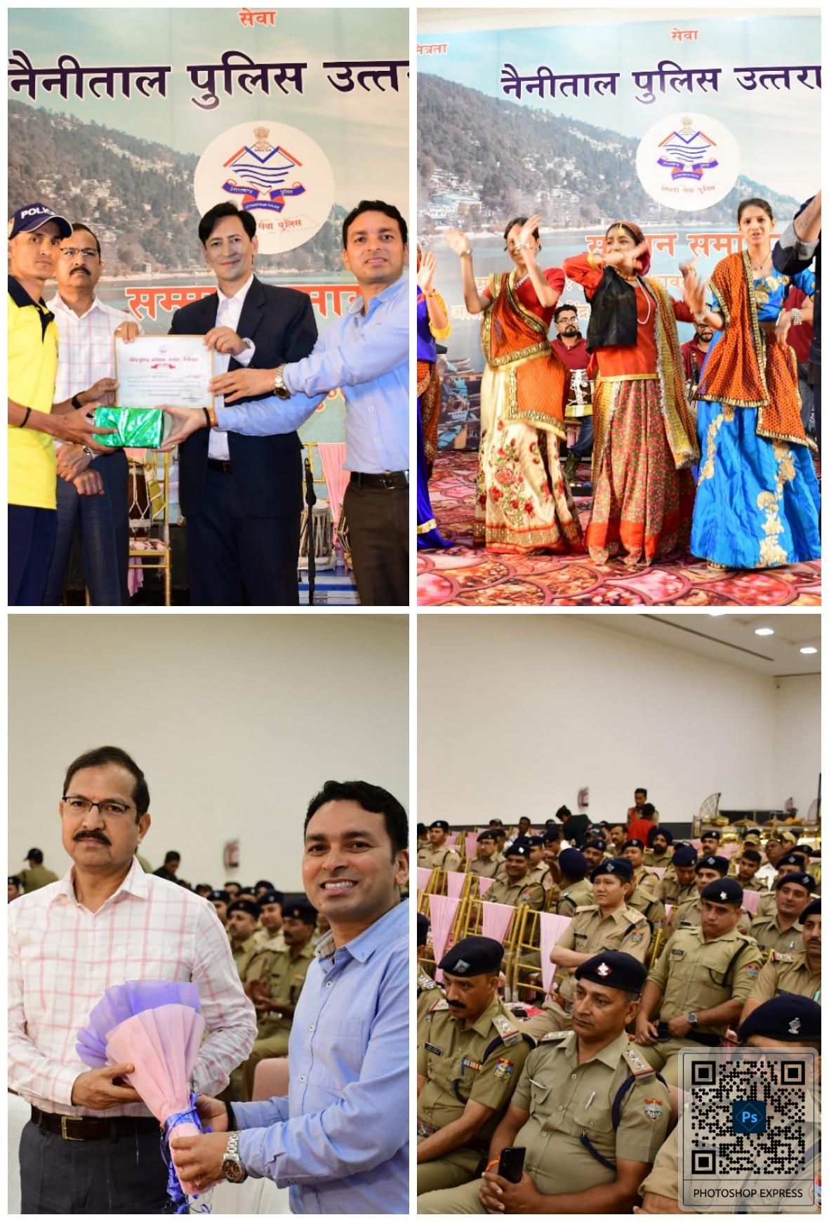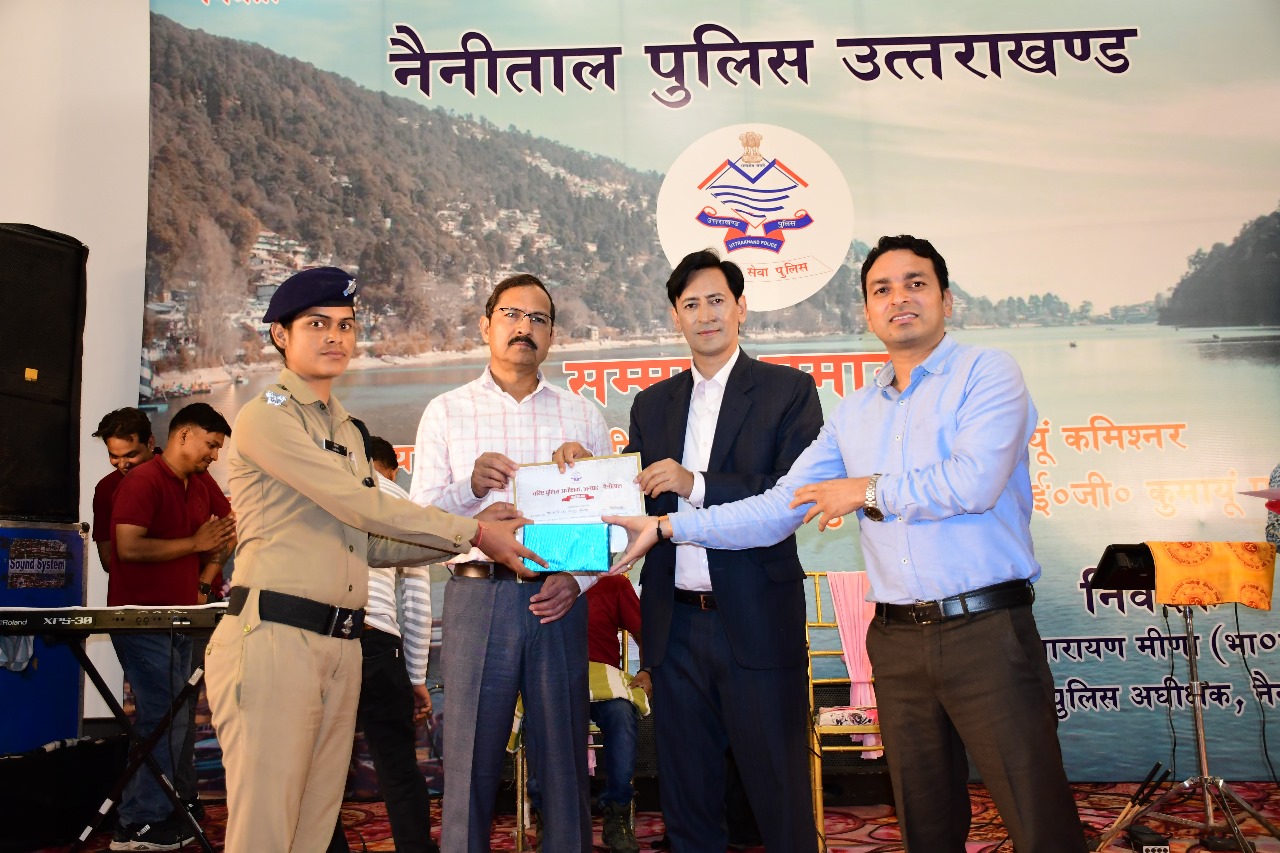 इसके अतिरिक्त सीओ सिटी नितिन लोहनी द्वारा देश भक्ति गाने एवं पीएसी की उ0नि0 हेमा जोशी द्वारा भी गाना गाकर अपनी प्रतिभा का प्रस्तुतिकरण किया गया।इसी के साथ “सम्मान समारोह” में उत्तराखण्ड के प्रसिद्व गायक इंदर आर्या ने अपने हिट गीतों को गा कर समाॅ बाध दिया।उक्त “सम्मान समारोह” में मुख्य अतिथि /विशिष्ट अतिथि एवं एसएसपी नैनीताल द्वारा कार्यक्रम के दौरान अपने वक्तव्यों में पुलिस के समाने लगातार आने वाली चुनौती पूर्ण ड्यूटियों को सकुशल सम्पन्न कराये जाने हेतु डूयूटी में लगे समस्त सुरक्षा बलों के कार्यों की सराहना करते हुए बधाइयाॅ दी गयी एवं कहा कि-नैनीताल पुलिस के समस्त अधि0/कर्म0 द्वारा कई चुनौतीपूर्ण ड्यूटियों को सकुशल सम्पन्न कराया। वनभूलपुरा दंगा, लोक सभा चुनाव, पर्यटन सीजन, कैचीं धाम एवं अपराध नियंत्रण से सम्बन्धित कई चुनौती पूर्ण ड्यूटियों को सम्पूर्ण पुलिस बल/फायर/पीएससी/बाहरी जनपदों से आये पुलिस बल/होमगार्ड आदि सभी ने दिन-रात कड़ी मेहनत, लगन और कर्तव्यनिष्ठा से अपनी ड्यूटी का निर्वहन किया। जिससे जनपद में शान्ति एवं कानून व्यवस्था बनी रही।पर्यटन नगरी में जनपद में आने वाले पर्यटकों द्वारा प्रत्यक्ष वं अप्रत्क्ष रूप से सराहना भी की गयी। *हम सब ने एकजुट होकर एक टीम के रुप में कार्य किया, तभी हम चुनौतीपूर्ण ड्यूटियों को सकुशल सम्पन्न कराने में सफल रहें, सभी से अपेक्षा है कि आप भविष्य में भी इसी मेहनत,लगन के साथ अपने कर्तव्यों का निर्वहन करते रहेंगे।विभिन्न क्षेत्रों में अपनी मेहनत एवं लगन चुनौतीपूर्ण ड्यूटियों को सम्पन्न करने वाले चयन सिमिति द्वारा चयनित किये गये 128 पुलिस अधि0/कर्म0गण/बाहरी जनपदों के पुलिस बल/फायर/पीएसी/होमगार्ड को प्रशस्ति पत्र एवं पुरस्कार से पुरूस्कृत कर उत्साहवर्धन किया गया। जिनमे राजपत्रित अधिकारी भी शामिल रहे।कार्यक्रम का सफल मंच संचालन श्री नीरज भाकुनी थानाध्यक्ष वनभूलपुरा द्वारा किया गया।सम्मान समारोह कार्यक्रम के उपरान्त उपस्थित अतिथियों व अधिकारियों/जवानों द्वारा एक साथ भोजन ग्रहण किया गया।जवानों की तालियों की करतल ध्वनि के बीच प्रकाश चन्द्र एसपीसिटी, हरबंस सिंह एसपी क्राइम/यातायात नैनीताल एवं जनपद पुलिस के सभी राजपत्रित अधिकारी, थानाध्यक्ष, विभिन्न शाखा प्रभारी एवं अधिनस्थ अधि0/कर्म0 गण मौजूद रहे।