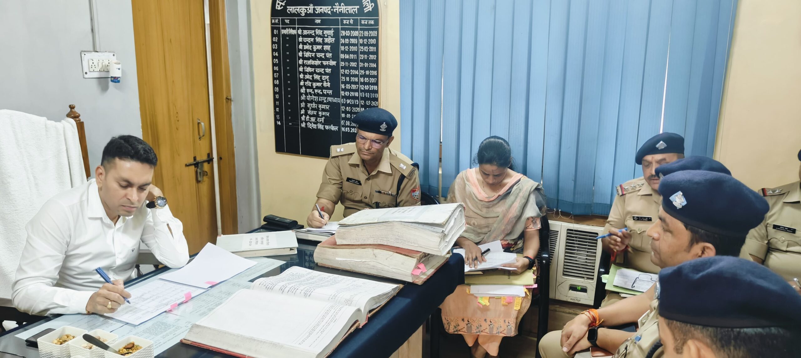 आदेश कक्ष में प्रकाश चंद्र एसपी सिटी हल्द्वानी, संगीता सीओ लालकुआं दिनेश सिंह फर्त्याल प्रभारी निरीक्षक लालकुआं, डी०आर०वर्मा प्रभारी निरीक्षक भवाली, हरेंद्र सिंह नेगी एस०एस०आई० लालकुआं समेत कोतवाली लालकुआं के विवेचक मौजूद रहे।