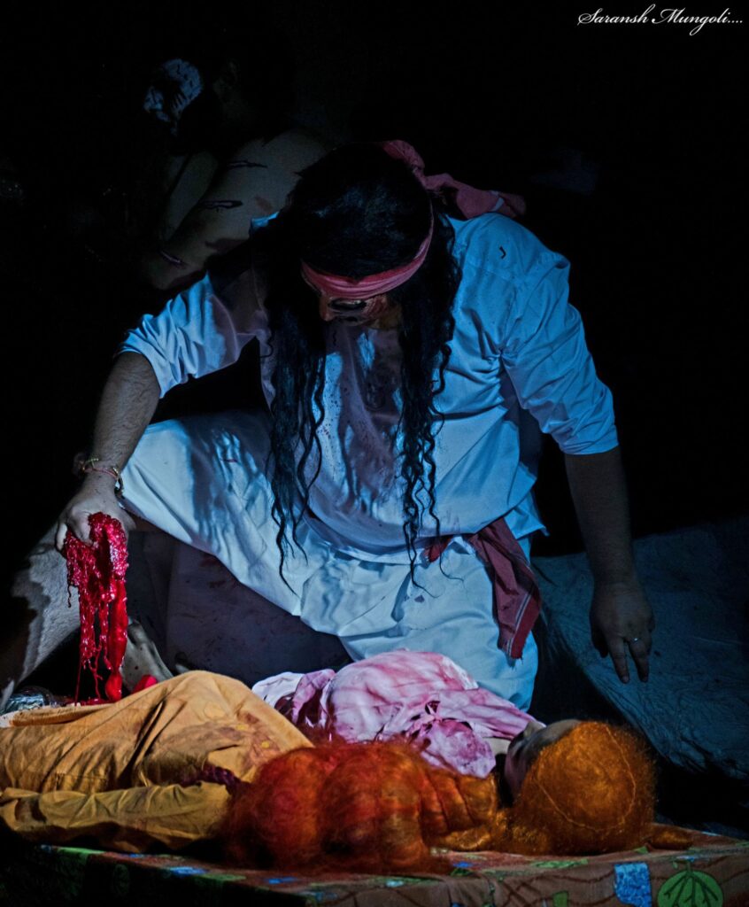 साज पर हारमोनियम में मोहन जोशी, तबले पर शेखर सिजवाली और अरशद खान ने अपना सहयोग प्रदान किया। राम द्रोण नेगी, लक्ष्मण अविरल जोशी, सीता किरन परगई, सुर्पनख़ा सुनील तिवारी, दिव्यांशु जोशी, प्रेम, त्रिसरा परितोष जोशी, त्रिसरा मंत्री आयुष वर्मा, पंकज परगाई, खर गोपाल भंडारी दूषण कुलदीप सिंह मेर, खर दूषण मंत्री संजय जोशी, खर दूषण दरबार नर्तकी शौम्या सनवाल, मोनू, रावण हरि विनोद साह, मारीच सिद्धार्थ साह, जोगी रावण परितोष जोशी जटायु प्रेम, राक्षस सुमित, हर्षित, हिमांशु द्वारा किया गया। त्रिसरा के पात्र परितोष जोशी के जीवंत अभिनय को दर्शकों द्वारा बहुत सराहा गया।