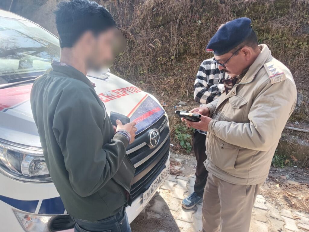 अल्मोड़ा । प्रभारी यातायात निरीक्षक दरबान सिंह मेहता द्वारा मय हमराही कानि0 ललित सिंह के लोधिया बैरियर पर चेंकिग की जा रही थी,इस दौरान अल्मोड़ा से हल्द्वानी की ओर जा रही बस संख्या UK01PA0086 को रोककर एल्कोमीटर से चैक किया गया तो चालक सन्तोष कुमार पुत्र गोपाल राम निवासी अक्सोडा हरीनगर मुक्तेश्वर शराब के नशे मे बिना डीएल,बिना कागजात के वाहन चलाते हुए पाया गया,शराब के नशे में वाहन चलाकर चालक बस में सवार 12 लोगों की जान जोखिम में डाल रहा था। मेडिकल परीक्षण कराकर वाहन चालक को शराब के नशे मे वाहन चलाने पर मोटर वाहन अधिनयम के अंतर्गत गिरफ्तार कर, वाहन को मौके पर सीज किया गया ।
