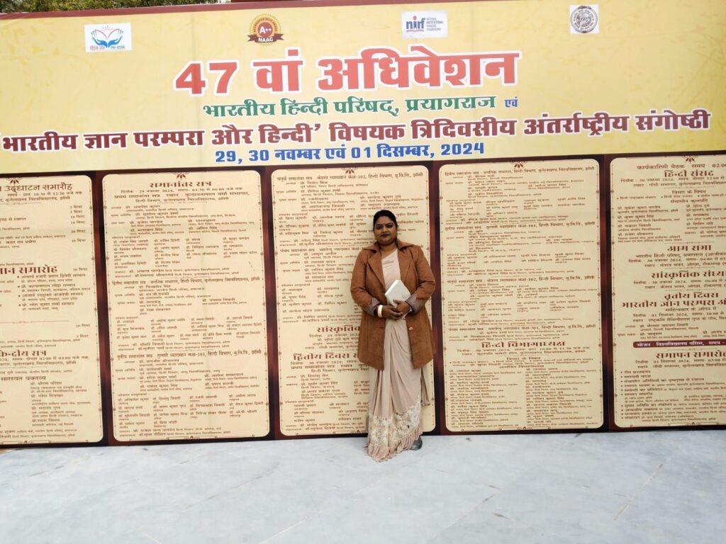 भारतीय हिन्दी परिषद के 47 सवें अधिवेशन अंतर्राष्ट्रीय संगोष्ठी जिसका विषय “भारतीय ज्ञान परंपरा और हिंदी” रहा का आयोजन बुंदेलखंड विश्वविद्यालय झांसी में किया गया। इस अवसर पर भारतीय अल्मोड़ा विश्वविद्यालय के लक्ष्मण सिंह महर परिसर में बतौर सहायक आचार्य कार्यरत डॉ प्रिया जोशी ने किया। इसके साथ ही हाल ही में भारतीय हिन्दी परिषद द्वारा डॉ प्रिया जोशी का शोध पत्र “हिंदी साहित्य में राष्ट्र चिंतन”चयनित हुआ था जिसे उन्होंने भारतीय हिन्दी परिषद के 47 सवें अधिवेशन में सबके समक्ष प्रस्तुत किया। आपको बता दें कि प्रिया जोशी द्वारा प्रस्तुत किया गया शोध पत्र देश के चुनिंदा लोगों में शामिल है इस पूरे उत्तराखंड के लिए साहित्य की दृष्टि से एक बड़ी उपलब्धि माना जा रहा है।