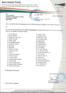 नई दिल्ली: आम आदमी पार्टी ने दिल्ली और हरियाणा के लिए स्टार कैंपेनर की लिस्ट जारी की है. लिस्ट में अरविंद केजरीवाल और सुनीता केजरीवाल का नाम शामिल है. वहीं, मनीष सिसोदिया भी स्टार प्रचारक की लिस्ट में शामिल हैं. बता दें कि दिल्ली के मुख्यमंत्री अरविंद केजरीवाल, उनकी पार्टी के सहयोगी और पूर्व उपमुख्यमंत्री मनीष सिसोदिया को कथित शराब घोटाले में ईडी ने गिरफ्तार किया है.
