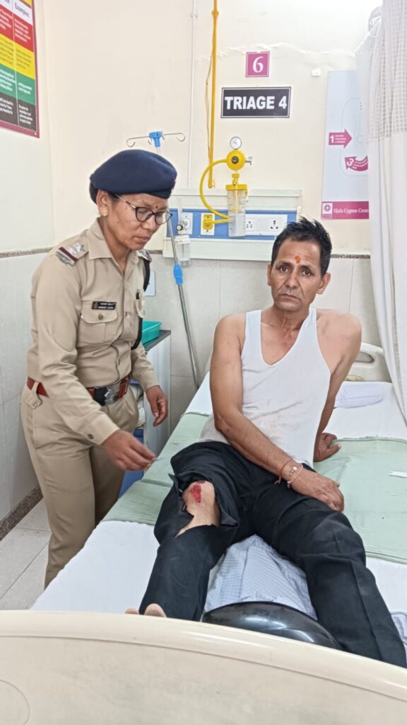 जिस कारण व्यक्ति का पूरा  परिवार चोटिल हो गए। यह देखकर ड्यूटी में तैनात अपर उपनिरीक्षक तुरंत मौके पर आईं और एक राह चलती कार को रोककर घायल व्यक्ति समेटे उसके परिवार को सेंट्रल हॉस्पिटल में त्वरित  उपचार हेतु ले गईं। इसके पश्चात डॉक्टरों द्वारा घायलों को अस्पताल में भर्ती कराया गया है और उचित उपचार दिया जा रहा है। महिला पुलिस कर्मी ने घायलों के नजदीकी परिजनों तथा थाना मुखानी की पुलिस को सूचित किया गया। परिजनों ने महिला पुलिस कर्मी का आभार व्यक्त किया तथा स्थानीय लोगों ने सराहना की।