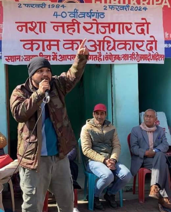 अल्मोड़ा नशा नहीं रोजगार दो आंदोलन की 40 वीं वर्षगांठ पर इस आंदोलन के संयोजक पी. सी. तिवारी ने कहा कि ये आंदोलन सामाजिक बदलाव का आंदोलन है उन्होंने जनता से हर तरह के मफियाराज के खिलाफ संगठित रूप से संघर्ष करने की अपील की। उन्होंने कहा कि बेरोजगारी व अनिश्चित भविष्य युवाओं को अवसाद व नशे की ओर धकेल रहा है इसलिए सरकार को रोजगार को मौलिक अधिकार बनाने की पहल करनी चाहिए।