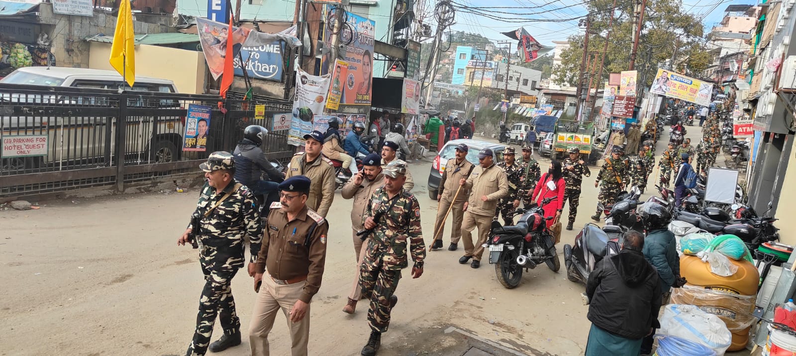 अल्मोड़ा: एसएसपी देवेन्द्र पींचा के निर्देशन में आगामी लोकसभा निर्वाचन के मद्देनजर शांति एवं कानून व्यवस्था बनाए रखने के उद्देश्य से नगर में आज सीओ विमल प्रसाद के पर्यवेक्षण व कोतवाली के प्रभारी निरीक्षक जगदीश चंद्र देऊपा के नेतृत्व में पुलिस बल व एसएसबी ने मिलकर फ्लैग मार्च किया। फ्लैग मार्च के जरिये चुनाव में भयमुक्त व निष्पक्ष मतदान के लिए प्रेरित किया गया और जनमानस में सुरक्षा का भाव पैदा करने का प्रयास किया गया।