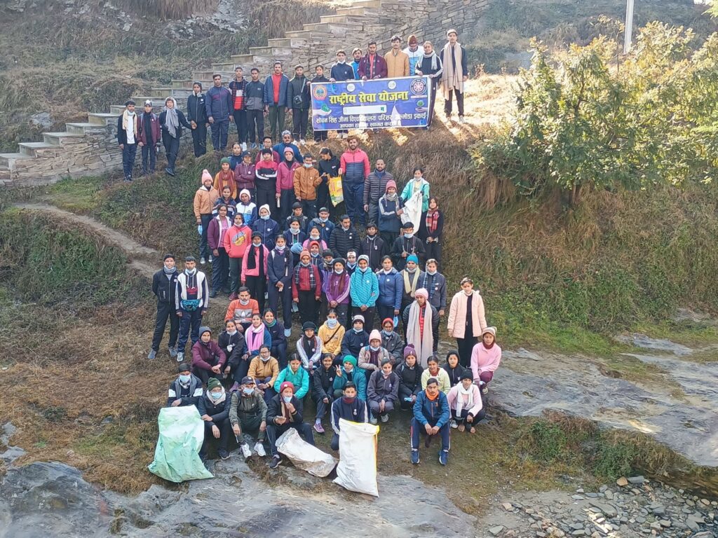 आज दिनाक 9जनवरी 2024 को राष्ट्रीय सेवा योजना एस एस जे परिसर अल्मोड़ा की तीनो इकाईयो के गांधी इण्टर कालेज पनुवनौला मे चल रहे सात दिवसीय विशेष शिविर के तृतीय दिवस के अंतर्गत राष्ट्रीय सेवा योजना के वृहद उदेश्यो की पूर्ति के क्रम् मे एक कार्यक्रम श्रृखला का आयोजन किया गया। इस श्रृखला के प्रथम चरण मे समस्त स्वयंसेवियो ने कार्यक्रम अधिकारियों डा. डी एस धामी, डा.रविंद्र नाथ पाठक, डॉ.प्रेमा खाती के नेतृत्व एवम् निर्देशन मे गांधी इंटर कालेज पनुवानौला से लेकर जागेश्वर धाम तक एक जन जागरूकता रैली का आयोजन किया गया जिसके विषय पालीथिन उन्मूलन, पर्यवरण संरक्षण, जल स्रोतो की सफाई तथा स्वछता थे