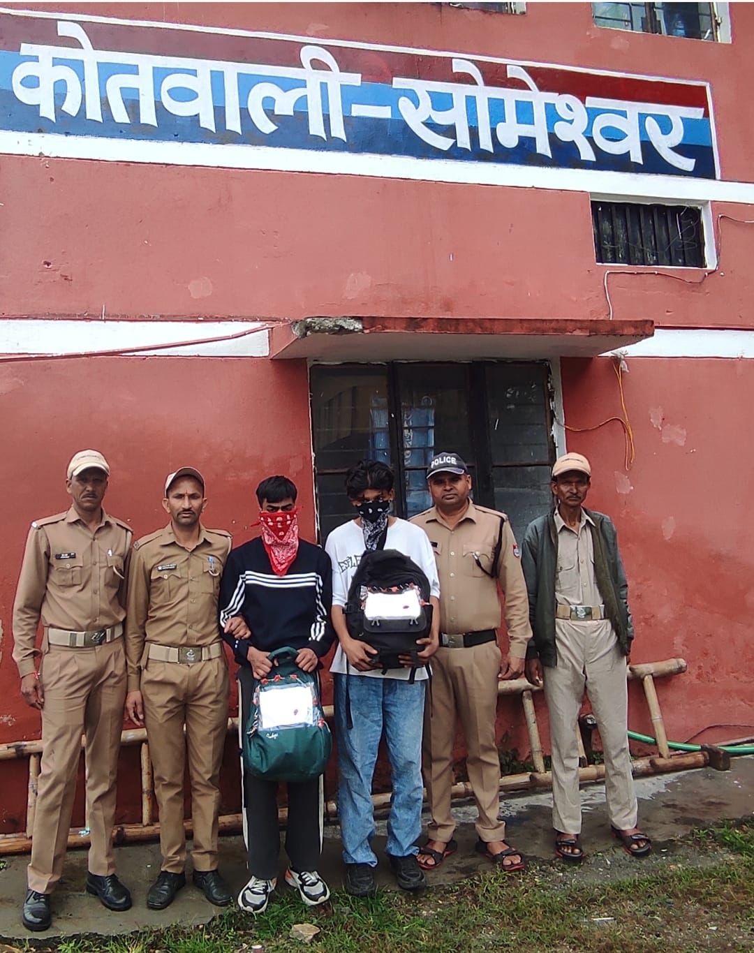 अपर पुलिस अधीक्षक हरबन्स सिंह व सीओ अल्मोड़ा गोपाल दत्त जोशी के पर्यवेक्षण में प्रभारी निरीक्षक मदन मोहन जोशी, कोतवाली सोमेश्वर के नेतृत्व में चौकी ताकुला पुलिस टीम द्वारा दिनांक- 28.08.2025 के रात्रि करीब 10:00 बजे चौकी क्षेत्र चैकिंग के दौरान गणनाथ तिराहे से पिट्टू बैगधारी दो युवक मौ0 शाहवाज व राकेश सनवाल के कब्जे से क्रमशः 270 ग्राम व 255 ग्राम कुल 525 ग्राम अवैध चरस बरामद कर अभियुक्तों को गिरफ्तार करते हुए कोतवाली सोमेश्वर में मु0अ0स0- 26/2025 धारा 8/20 NDPS एक्ट के अन्तर्गत अभियोग पंजीकृत कर आवश्यक कार्यवाही की गयी।