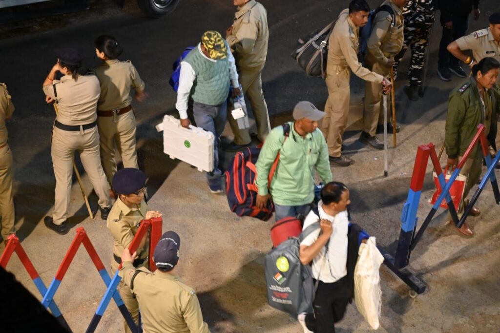 आज दिनांक 19 अप्रैल 2024 को लोकसभा चुनाव के मतदान को सकुशल संपन्न कराकर पोलिंग पार्टियां ईवीएम जमा करने स्ट्रांग रूम चितई आईटीआई में आ रही है।