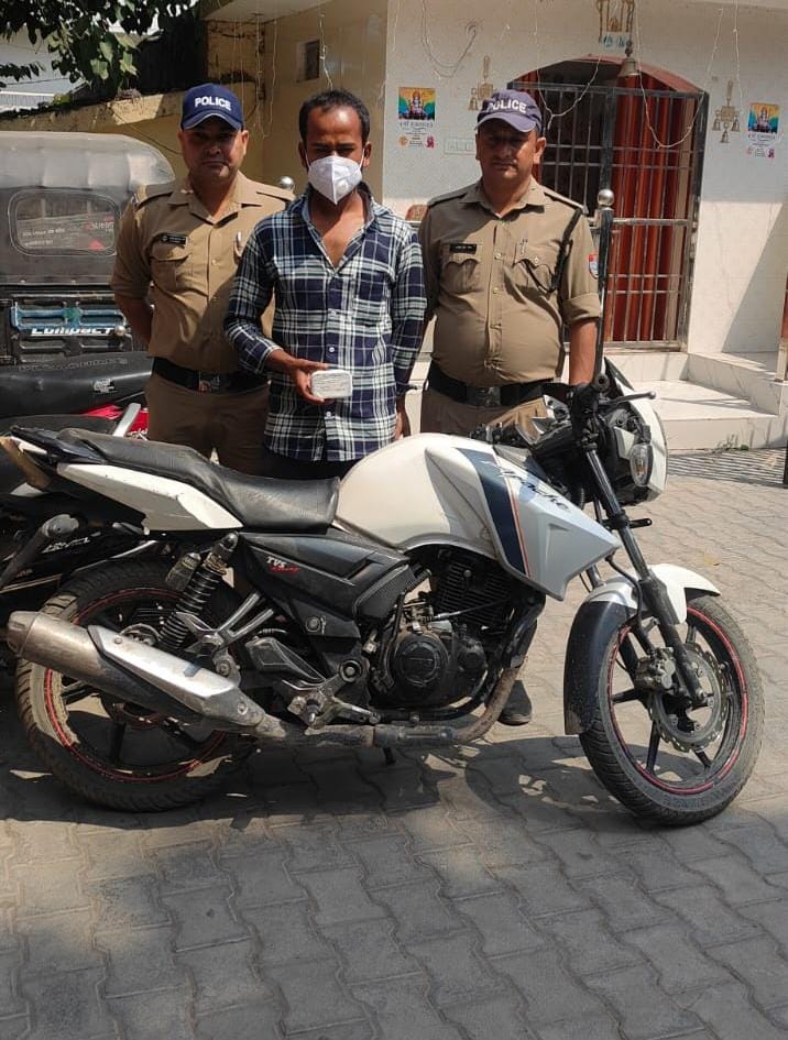 जिस आदेश के क्रम में प्रकाश चंद्र, एसपी सिटी हल्द्वानी  नितिन लोहनी सीओ हल्द्वानी के पर्यवेक्षण तथा  उमेश कुमार मलिक प्रभारी निरीक्षक हल्द्वानी के नेतृत्व में  दिनेश चंद्र जोशी प्रभारी चौकी मंगल पड़ाव व पुलिस टीम द्वारा कुशल कार्ययोजना बनाकर मुखबिर मामूर करते हुए चोरी की घटना में संलिप्त अभियुक्त को मोटरसाइकिल के साथ गोलापार से गिरफ्तार किया गया।