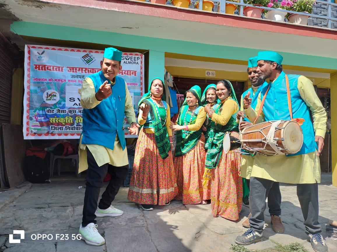 आगामी लोकसभा सामान्य निर्वाचन में मतदान प्रतिशत बढ़ाने हेतु स्वीप टीम के माध्यम से पालिका कर्मियों  एवम निर्मल स्वयं सहायता समूह जोशीखोला द्वारा आम जनमानस  के साथ 100 प्रतिशत मतदान का लक्ष्य संदेश के साथ  वोट अपील की गई और  मतदाता जागरूकता एवम शपथ दिलाई गई ।