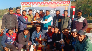 अल्मोड़ा-दिनाँक 3 दिसंबर को कॉलेज ग्राउंड सिमकनी में सिद्धदेश्वर महादेव क्रिकेट टूर्नामेंट का फाइनल मुकाबला कसार वारियर्स व सिमकनी वारियर्स के बीच खेला गया।कार्यक्रम में मुख्य अतिथि के तौर पर पूर्व दर्जा मंत्री बिट्टू कर्नाटक उपस्थित रहे।साथ में विशिष्ट अतिथि के रूप में दिनेश चंद्र जोशी,आर्यन छात्र संगठन के गिरीश पांडेय,छात्रसंघ अध्यक्ष राहुल सिंह धामी,राजेश अलमिया व पूर्व छात्रसंघ कोषाध्यक्ष अभिषेक बनैला रहे।कार्यक्रम का संचालन उज्ज्वल जोशी द्वारा किया गया।फाइनल मुकाबले में कसार वारियर्स ने पहले बल्लेबाजी करते हुए 120 रन का स्कोर सिमकनी वारियर्स के लिए रखा।जवाब में सिमकनी वारियर्स ने निर्धारित 15 ओवर मे 119 रन बनाए व मैच ड्रा हुआ।उसके बाद सुपर ओवर में कसार वारियर्स ने ये खिताब अपने नाम किया।फाइनल मुकाबले के मैन ऑफ द मैच कसार वारियर्स के मोहित सिंह बिष्ट रहे।टूर्नामेंट के सर्वश्रेष्ठ बल्लेबाज सूरज बिष्ट (कसार वारियर्स),