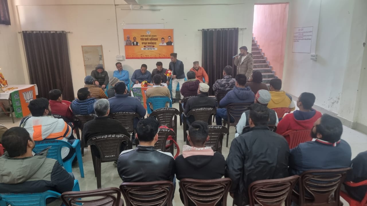 बैठक मे मुख्य वक्ता के रुप मे इस कार्यक्रम के जिला संयोजक महिपाल बिष्ट जी रहे आज का कार्यक्रम नगर अध्यक्ष अमित साह मोनू कि अध्यक्षता में किया गया आज के कार्यक्रम में मुख्य अतिथि पुर्व विधायक रघुनाथ सिंह चौहान, व साथ मे जिला सहकारी बैंक के अध्यक्ष ललित लटवाल, जिला महामंत्री धर्मेन्द्र बिष्ट, रहे, अतिथियों का स्वागत नगर संयोजक चन्दन रावत ने किया व कार्यक्रम संचालन नगर महामंत्री अर्जुन बिष्ट ने किया, मुख्य वक्ता जिला संयोजक महिपाल बिष्ट ने सभी पदाधिकारियों को संबोधित करते हुए गांव चलो अभियान नगर चलो कार्यशाला में सभी बुथ के अध्यक्षों,प्रवासी कार्यकताओं को कई महत्वपूर्ण सुझाव दिये , सरकार कि नीतियों को जन-जन तक पहुंचाने पर जोर दिया गया, नगर अध्यक्ष अमित साह मोनू ने सभी पदाधिकारियों को संबोधित करते हुए पार्टी के सभी कार्यक्रमो में ज्यादा से ज्यादा संख्या में उपस्थित रहने व पार्टी के लिए अभी से सक्रिय होने को कहा और गांव चलो अभियान, नगर अभियान को सफल बनाने के महत्वपूर्ण सुझाव दिये,आज कि कार्यशाला में भारी संख्या में पदाधिकारी उपस्थित रहे पुर्व विधायक रघुनाथ सिंह चौहान, पुर्व जिला सहकारी बैंक अध्यक्ष ललित लटवाल, जिला महामंत्री धर्मेन्द्र बिष्ट, जिला उपाध्यक्ष, जिला संयोजक गांव चलो अभियान के महिपाल बिष्ट, नगर अध्यक्ष अमित साह मोनू, नगर संयोजक चन्दन रावत, महिला मोर्चा प्रदेश उपाध्यक्ष किरन पंत, जीला आईटी के गोविंद मटेला, मिडिया सह प्रभारी जगत तिवारी, नमो ऐप कृष्ण बहादुर सिंह,पूर्व जिला मंत्री विनीत बिष्ट,नगर महामंत्री अर्जुन बिष्ट नगर उपाध्यक्ष सौरव वर्मा,जगत भट्ट,नरेंद्र बिष्ट,नगर कोषाध्यक्ष दिनेश मतपाल,नगर मंत्री रमेश मेर,दिशांत पवार,आशीष गुरुरानी,पंकज जोशी,संजय साह,धर्मवीर आर्य,अजय वर्मा,तुषारकांत साह युवा मोर्चा जिला महामंत्री प्रकाश बिष्ट,जिला उपाध्यक्ष नमन गुरुरानी,नगर अध्यक्ष युवा मोर्चा चंदन बहुगुणा,मोहित बिष्ट,सलमान अंसारी,मुकुल कुमार,मोहम्मद मुददसर,दानिश अंसारी,फरमान खान, अरहान हबीब,श्याम पांडे,दीपक कपूर आदि कार्यकर्ता उपस्थित रहे